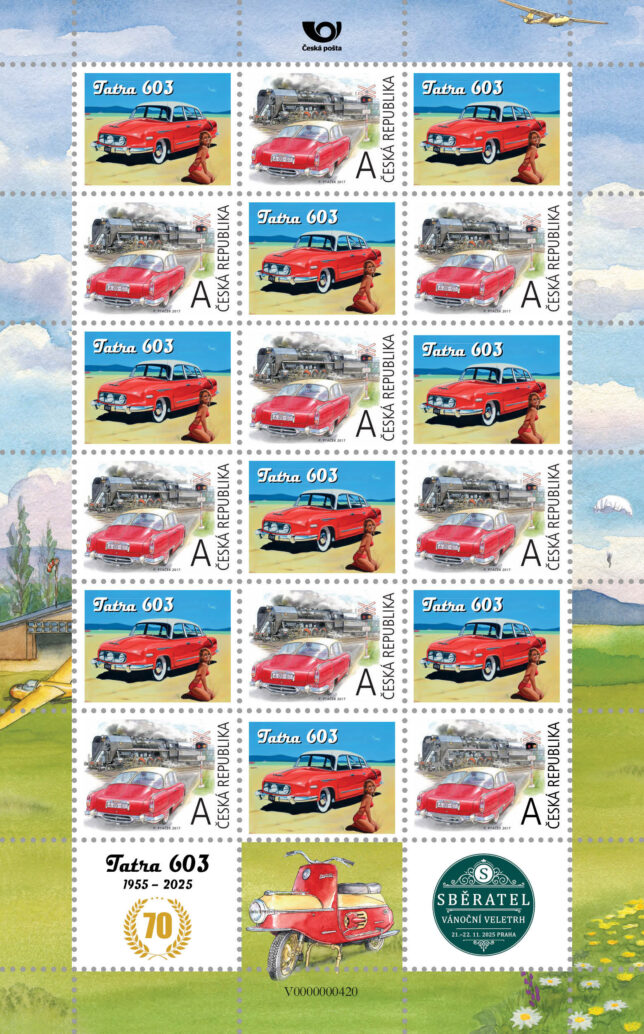 This year, the famous Czechoslovakian Tatra 603 car celebrates two anniversaries – 70 years since the start of production and 50 years since the end of production. At the fair, visitors will be able to purchase a stamp with a coupon issued by the Czech Post and a popular 0 euro souvenir banknote. The motif is the painting “Trip with Tatra 603” by artist Roman Sedlák. He will arrive at the fair on Friday for an afternoon autograph session.