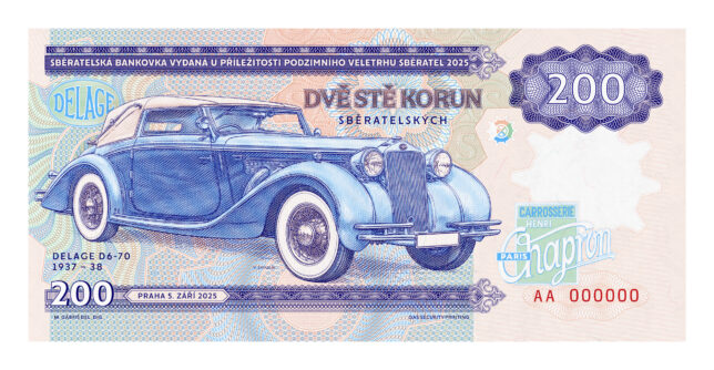At the Sberatel Fair, visitors could also meet Matej Gábriš, a leading global creator of fantasy banknotes and author of a collector’s banknote featuring a Delage D6-70 car, which had its premiere at the fair.
